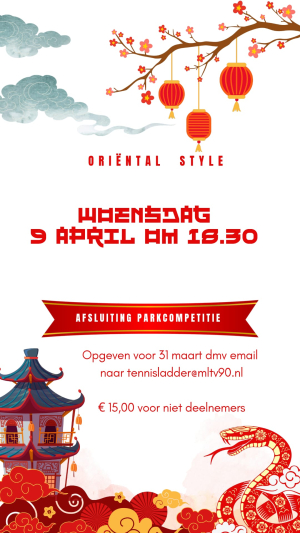 Op woensdagavond 9 april sluiten we de laddercompetitie feestelijk af in Oriëntal Style!
