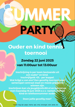 Op zondag 22 juni 2025 van 11:00 tot 13:00 uur organiseren we het ouder & kind toernooi bij MLTV’90! Een sportieve ochtend waarin plezier en samenspel centraal staan en mooie prijs te winnen zijn.