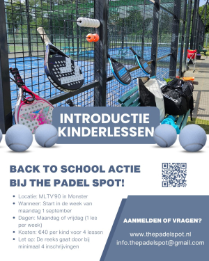 De afgelopen week heeft Tennisschool Jan de Rook tijdens de gymlessen van drie basisscholen in Monster tennislessen verzorgd bij tennis- en padelvereniging MLTV90. In vervolg op deze kennismaking organiseert MLTV'90 aanstaande zondag 15 maart een GRATIS toegankelijke open dag.